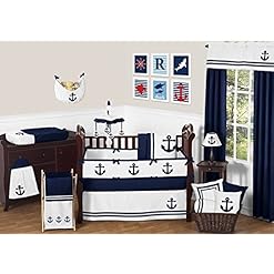 Anchors Away Collection Nautical Navy and White Boys Window Valance