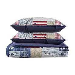 2-Piece Quilt Set – Nautical Americana Patchwork Print All-Season Soft Microfiber Bedspread with Shams – Bedding by LHC…