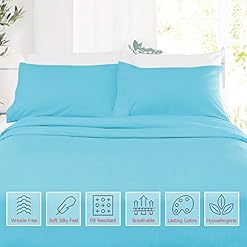 Twin Size Sheets – 3 Piece Twin Beach Blue Bed Sheet Set – Hotel Bed Sheets – Soft Microfiber Sheets – Easy Fit 8″ to 14″ Deep Pocket Fitted Sheets – 3 PC Sheets Twin Sheets – Bright Blue