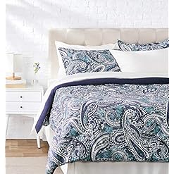Amazon Basics 6-Piece Ultra-Soft Microfiber Bed-In-A-Bag Comforter Bedding Set – Twin/Twin XL, Blue Paisley