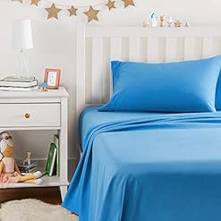 Amazon Basics Kid’s Sheet Set – Soft, Easy-Wash Lightweight Microfiber – Twin, Azure Blue