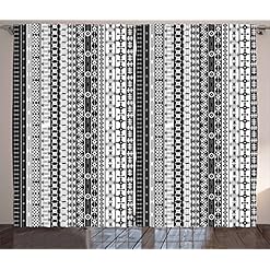 Ambesonne Prehistoric Curtains, Black and White Tribal Motifs Pattern Native Geometric Borders Design, Living Room…