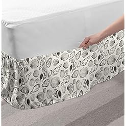 Ambesonne Nautical Bed Skirt, Sketch Style Pattern with Continuous Seashells Summer Beach Souvenirs Marine Art, Elastic…