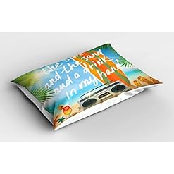 Ambesonne Saying Pillow Sham, Retro Design Tropical Beach with Surfboard Palm Leaves Flip Flops and Sunglasses…
