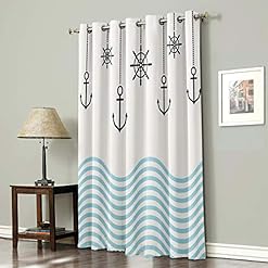 Bulingling Window Curtains Drapes Panel(24inch Length),Nautical Anchor Rudder Wave Window Treatments for Bedroom/Living…