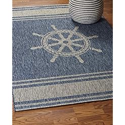 LR Home Captiva Nautical Helm Indoor/Outdoor Area Rug, 5′ x 7′, Navy/Gray