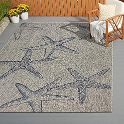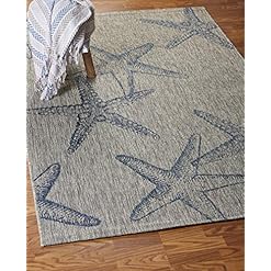 LR Home Captiva Starry Shores Indoor/Outdoor Area Rug, 7’9″ x 9’5″, Gray/Navy