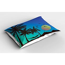 Be the first to review “Lunarable Beach Hammock Pillow Sham, Tropical Island Vacation Theme Retro Style Sunset Palm Trees Silhouette Print…” Cancel reply