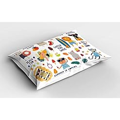 Be the first to review “Lunarable Summer Vibes Pillow Sham, Cartoon Design of Funny Animals in Swimsuits and Beach Fun Items Ice Cream…” Cancel reply