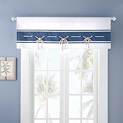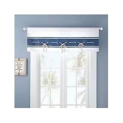 Nautical Looking Sailor Window Valance with Sailing Rope Trim, Mini Gromme, in Blue/white