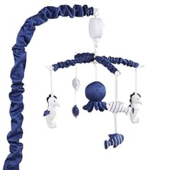 Electronic musical mobile features fish, seahorse, and octopus; digital music box plays twelve different tunes which can also be changed on the touch of a button; requires two AA Batteries (not included)
