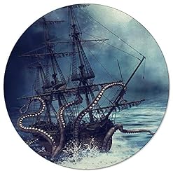 Octopus Area Rug Round Rugs 3ft, Ocean Kraken Nautical Pirate Ship Collection Area Runner Circle Rug (Non-Slip) Carpets…