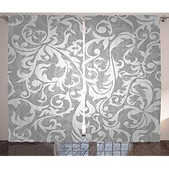 Red Vow Silver Curtains 2 Panel Set, Victorian Style Large Leaf Floral Pattern Swirl Classic Artsy Abstract French…