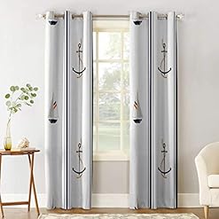 Window Curtains with Grommets Kitchen Drapes, Nautical Anchors and Boats on Striped Backdrop, 2 Panels Window Treatment…