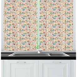 Ambesonne Surfboard Kitchen Curtains, Summer Vacation Tropical Island Beach Themed Artwork and Let’s Go Surfing Wording…